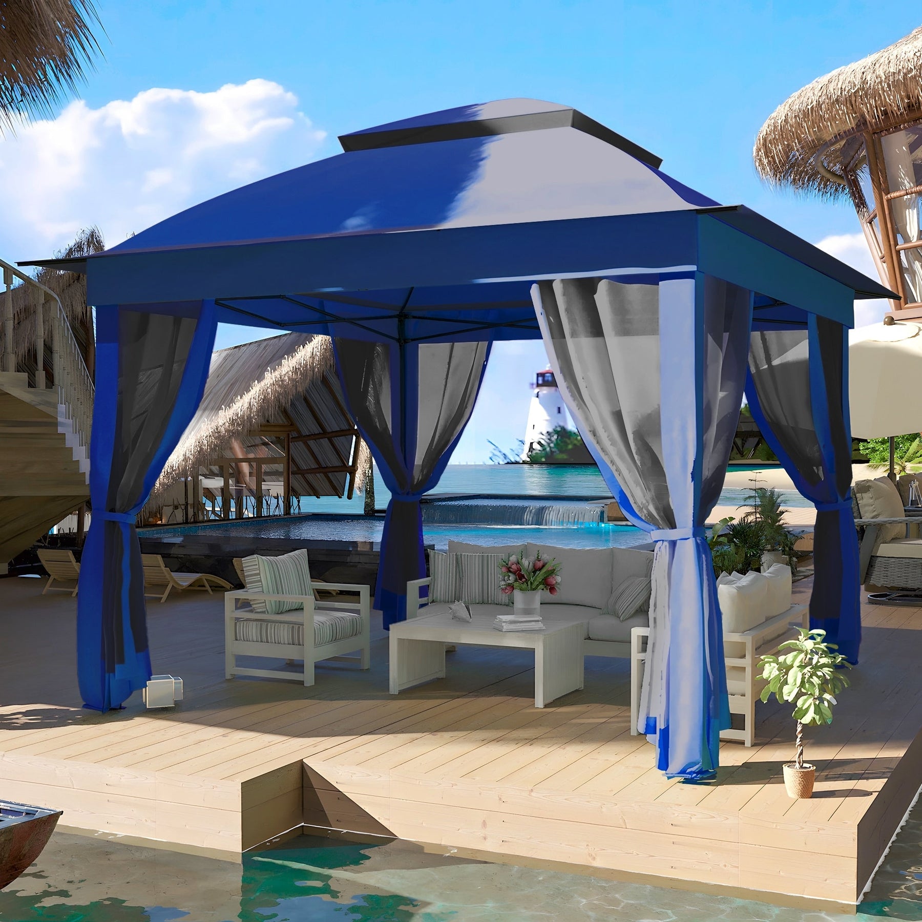 • TISSU OXFORD DURABLE - Le toit de la tonnelle est fabriqué en tissu Oxford 150D, avec une protection solaire UPF 50+ pour bloquer jusqu'à 99 % des rayons UV nocifs. Certifié CPAI-84, il est ignifuge, déperlant et respirant. De plus, le tissu est durable et résistera à des années d'utilisation.