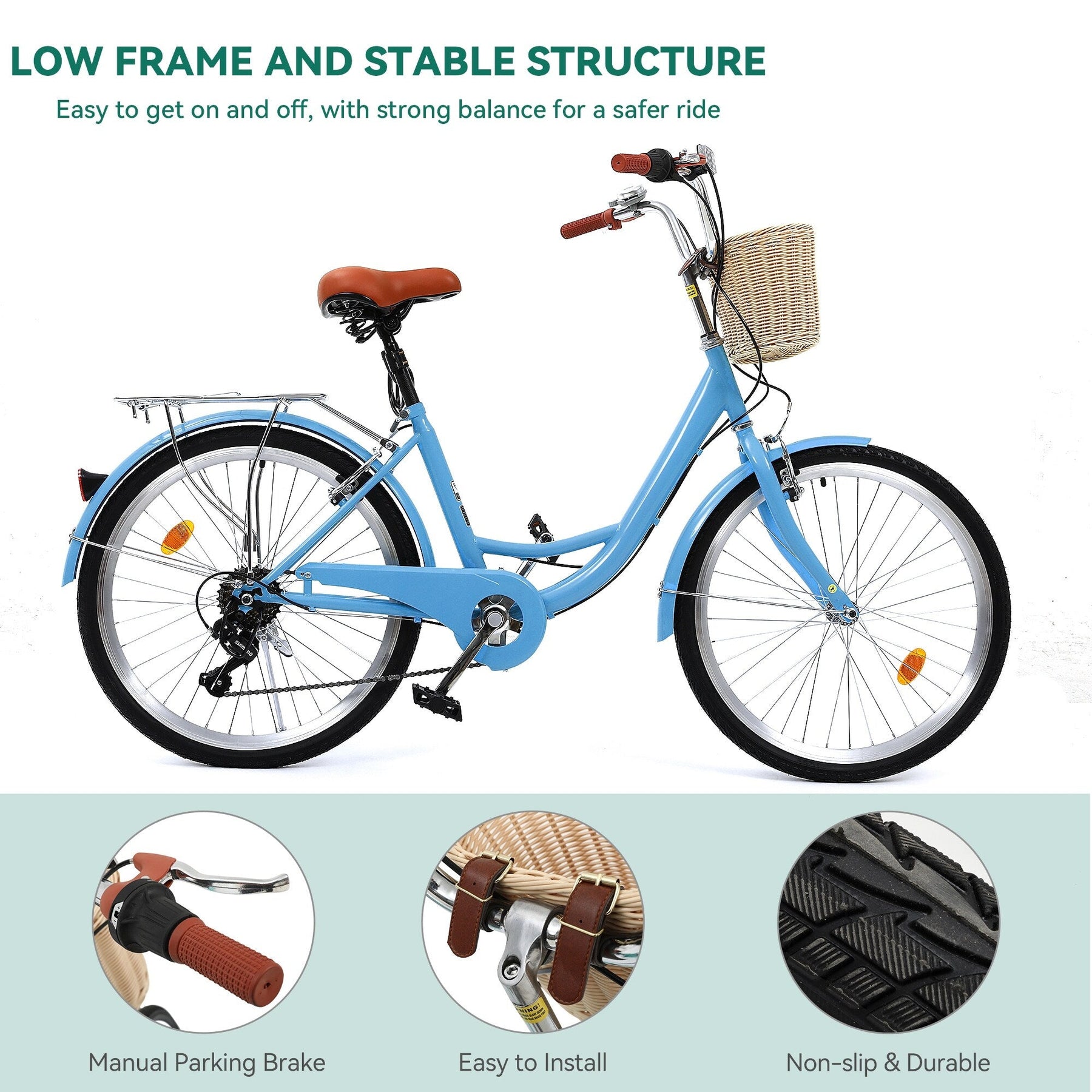 Notre vélo cruiser durable de 24/26 pouces utilise une cassette ATA à vitesse unique et des pneus en caoutchouc de qualité supérieure pour offrir une traction solide, une résistance à l'usure et des performances antidérapantes pour garder son pilote en contrôle même sur des routes accidentées.