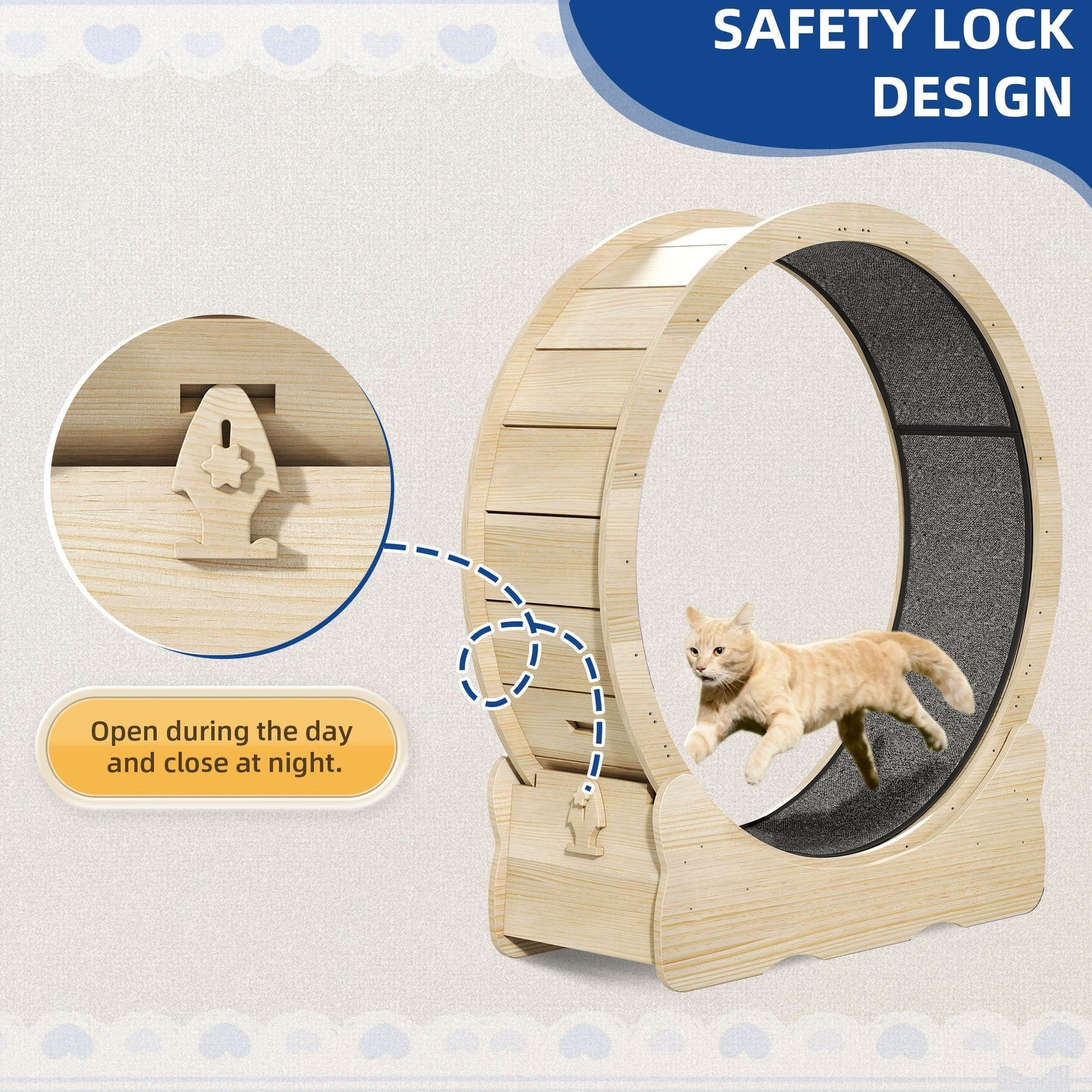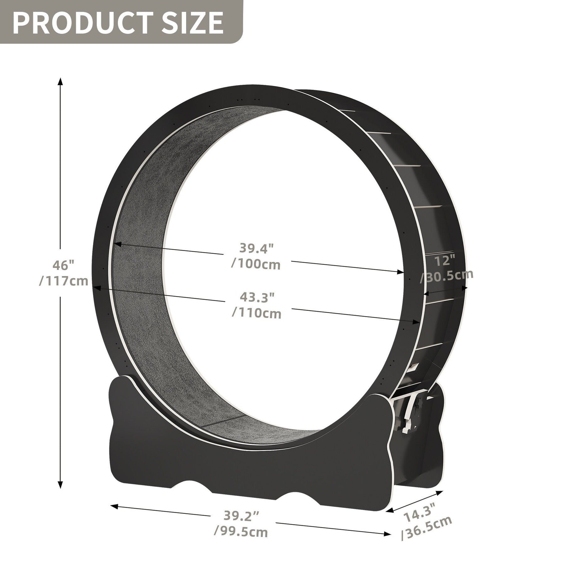 Moasis 43,3 pouces Grand tapis de course en bois pour chat avec roue d'exercice et piste recouverte de moquette